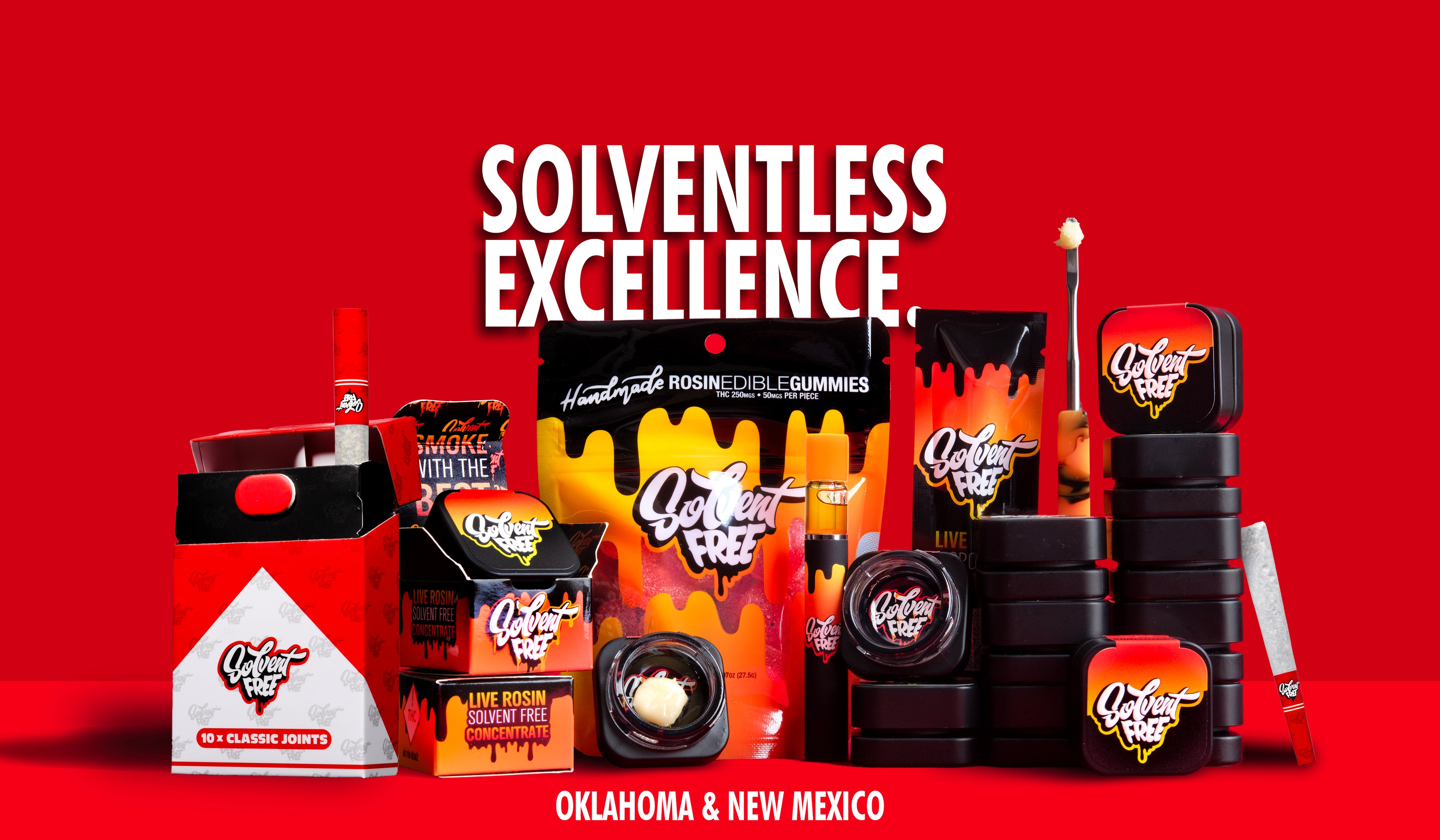 At Solvent Free, we don’t just make hash — we make heat. Our award-winning solventless products are pressed to perfection, delivering clean, potent, and terpene-rich rosin that speaks for itself. From smooth disposable rosin vapes to melt-in-your-mouth edibles, every product is crafted with precision and respect for the plant. We’re proudly setting the standard for solventless in both Oklahoma and New Mexico. If it’s not fire, it’s not Solvent Free.